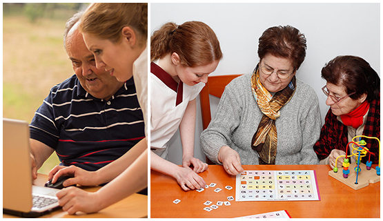 Nuestros profesionales proporcionan a los usuarios una atención integral (fisioterapia, taller de memoria, gimnasia adaptada...) en un ambiente familiar.